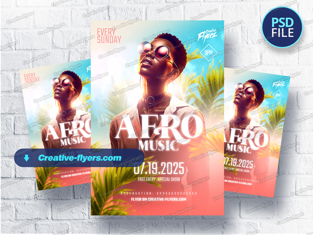 This flyer was created to capture the vibrant energy of Afro music events, blending tropical colors, bold typography, and modern design elements. The process involved selecting a dynamic background, integrating event details, and using visual cues like palm leaves and sunlight to evoke a festive, summer atmosphere perfect for promoting an unforgettable music night.