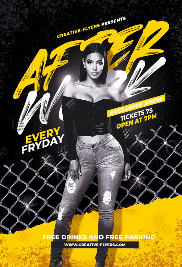 Eye-catching After work template, a Photoshop PSD flyer created to announce your next party, make the difference in a few clicks.