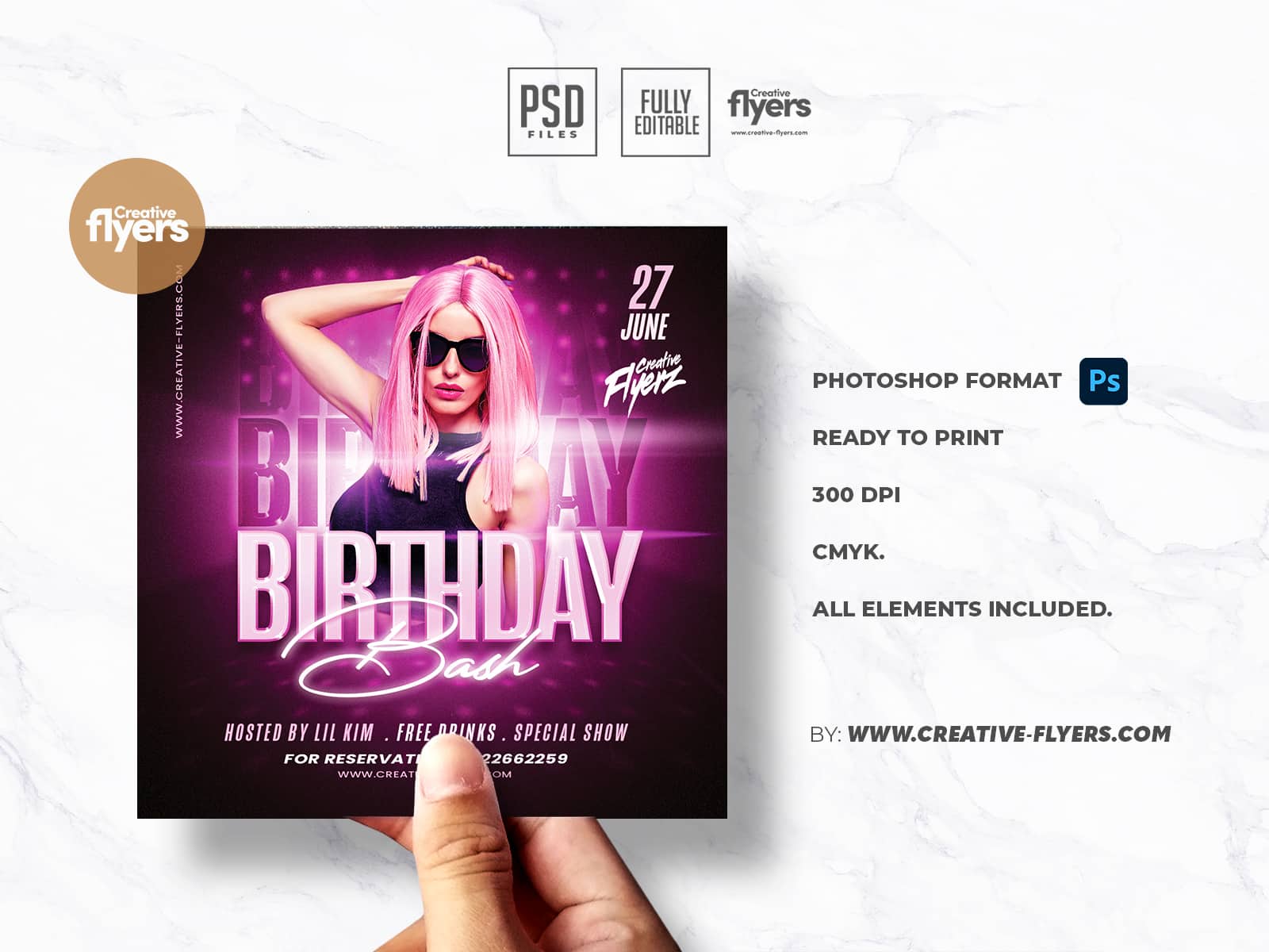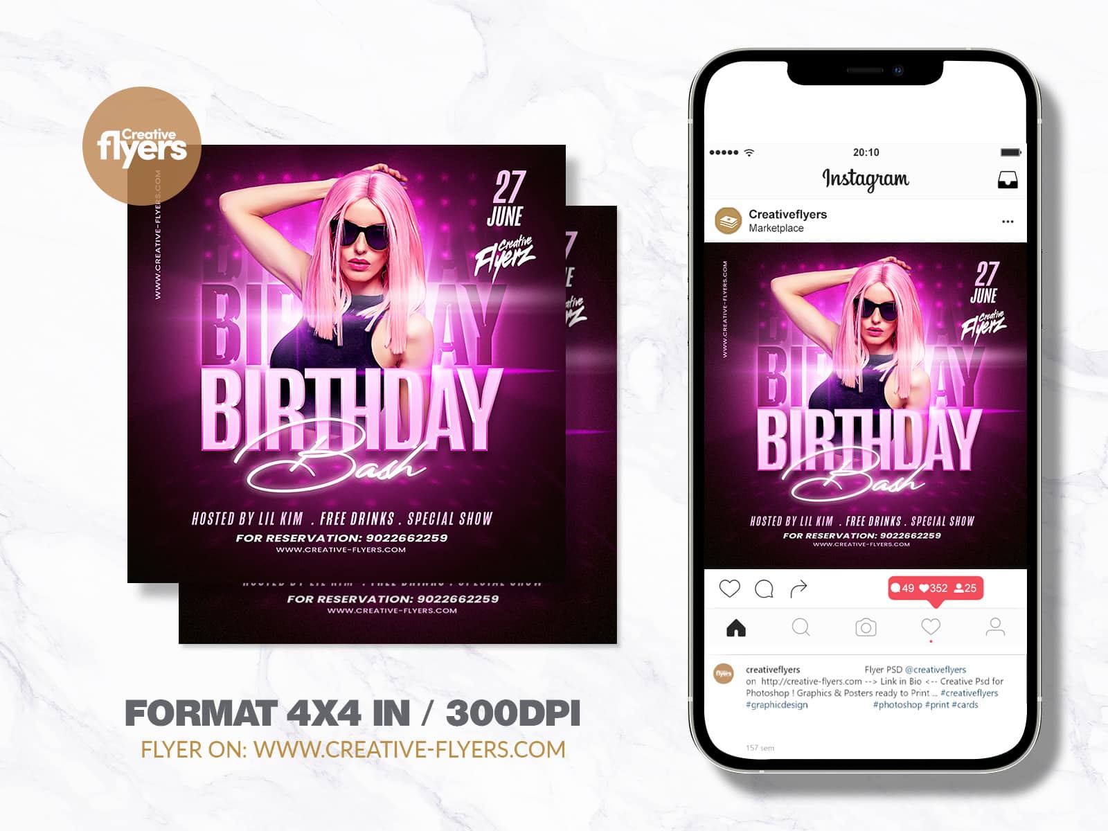 Premium flyer design to advertise an upcoming birthday party or anniversary events, pink and black design with amazing pink neon light effects.