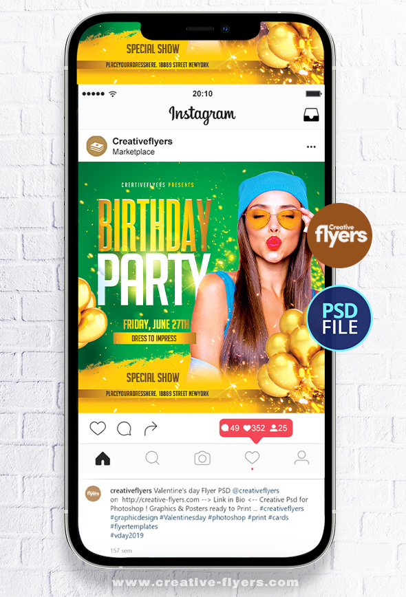 Gorgeous Photoshop flyer template in PSD format, created to announce your next birtdhay party or other anniversary events, top notch design to make a difference with just a few clicks.