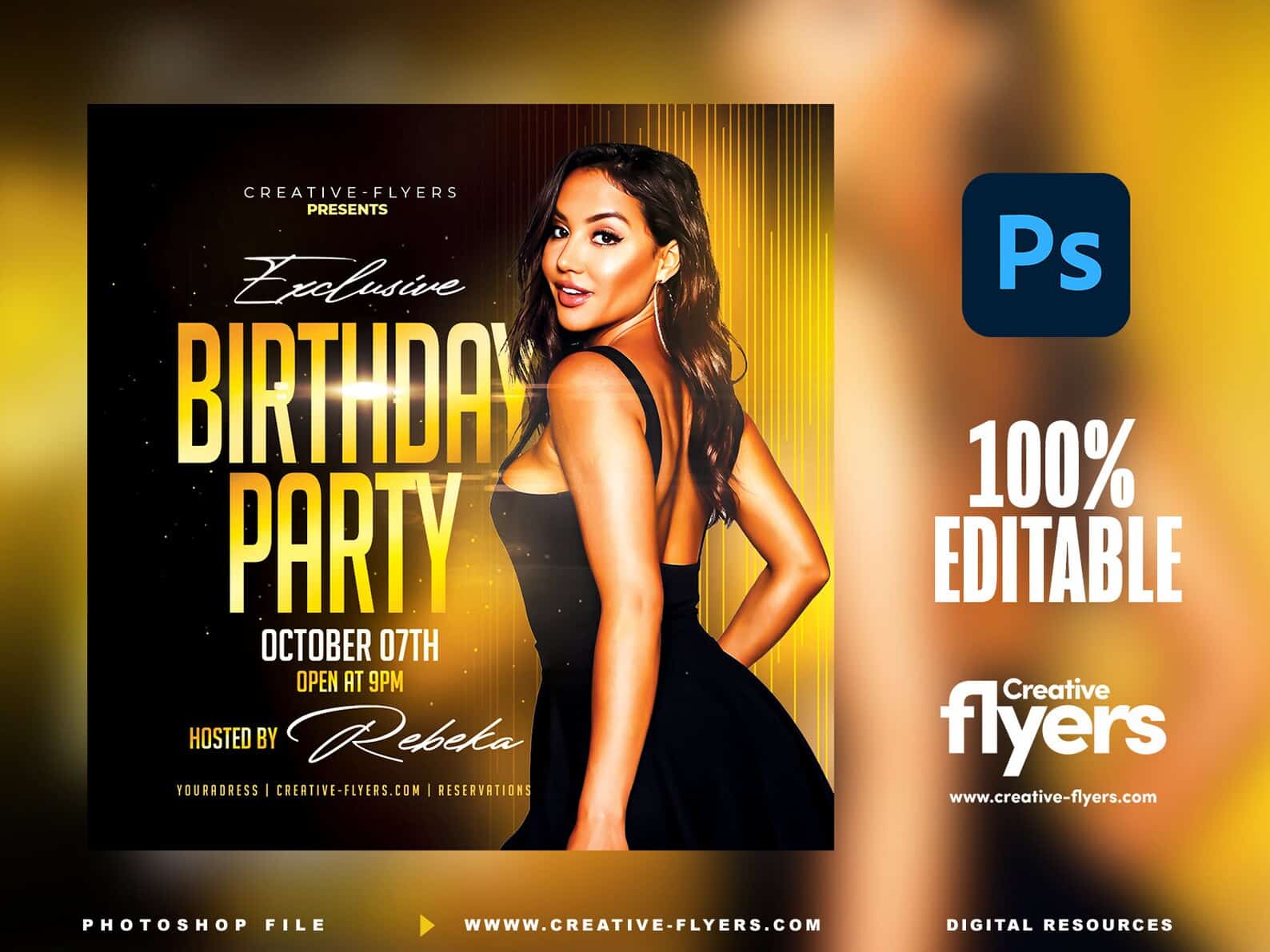 Stunning birthday flyer template to announce your next club party, bar or restaurant party or others next anniversary events, a fully editable quality design.