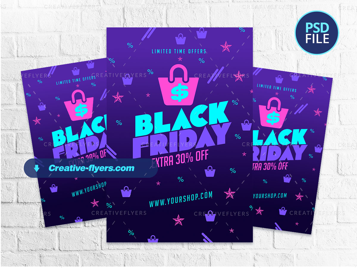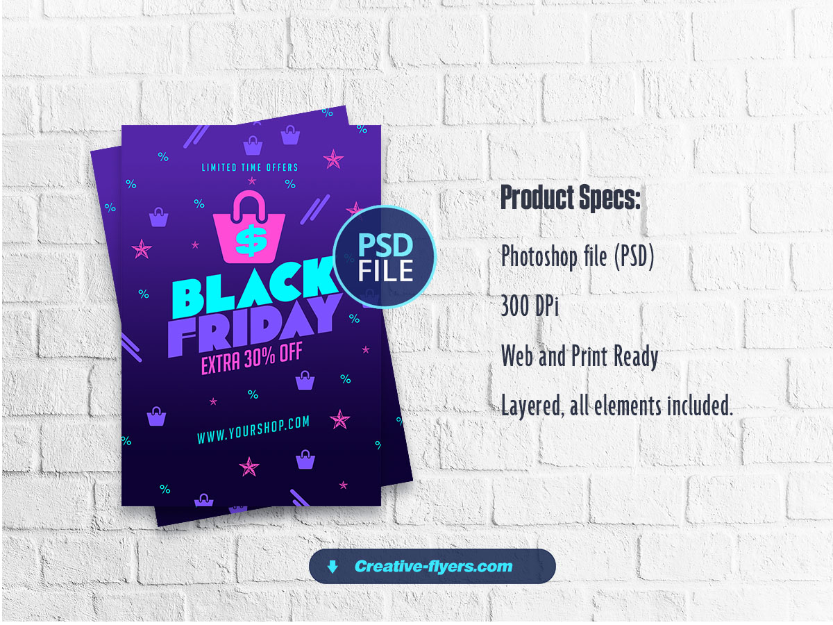 Create and launch your promotions with this black Friday flyer template, Enjoy this beautiful graphic and get ready for the big sales event of the year .. Designed to be printed.