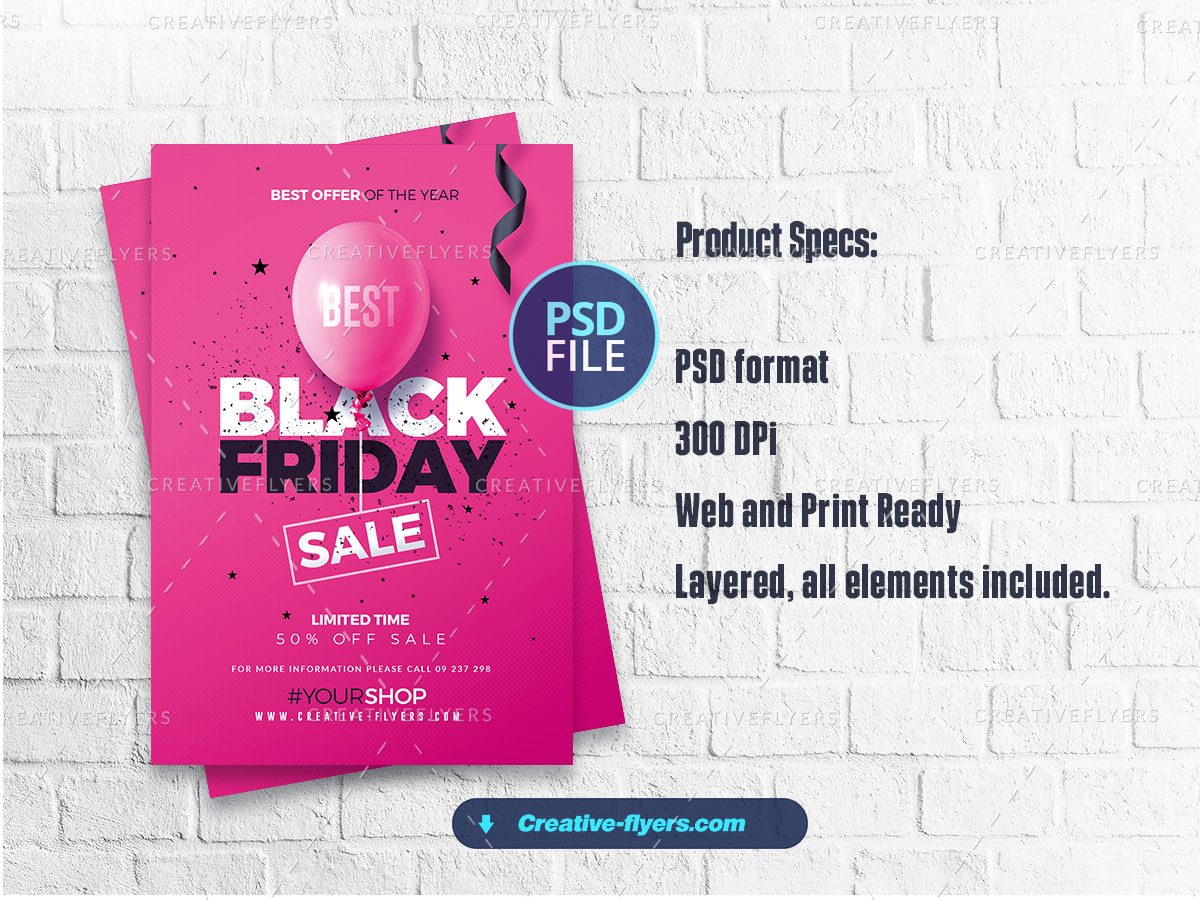 Enjoy downloading Black Friday Sale Flyer designed by Creativeflyers. This beautiful flyer customizable with photoshop is perfect to promote your black Friday Event !