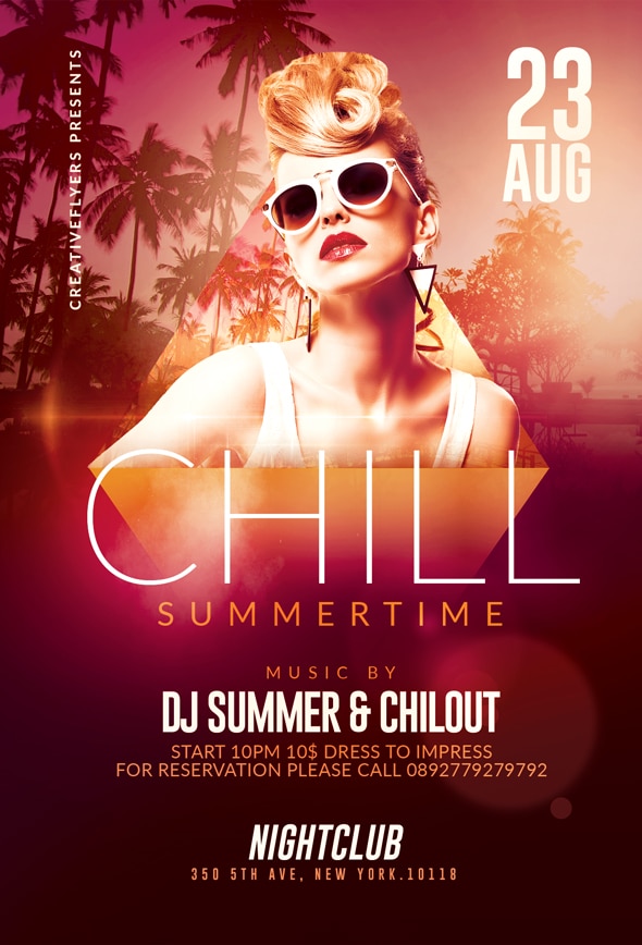 A very eye-catching summer graphic template, a first-rate Chill out design by Creativeflyers perfect to promote your next Summer Party.
