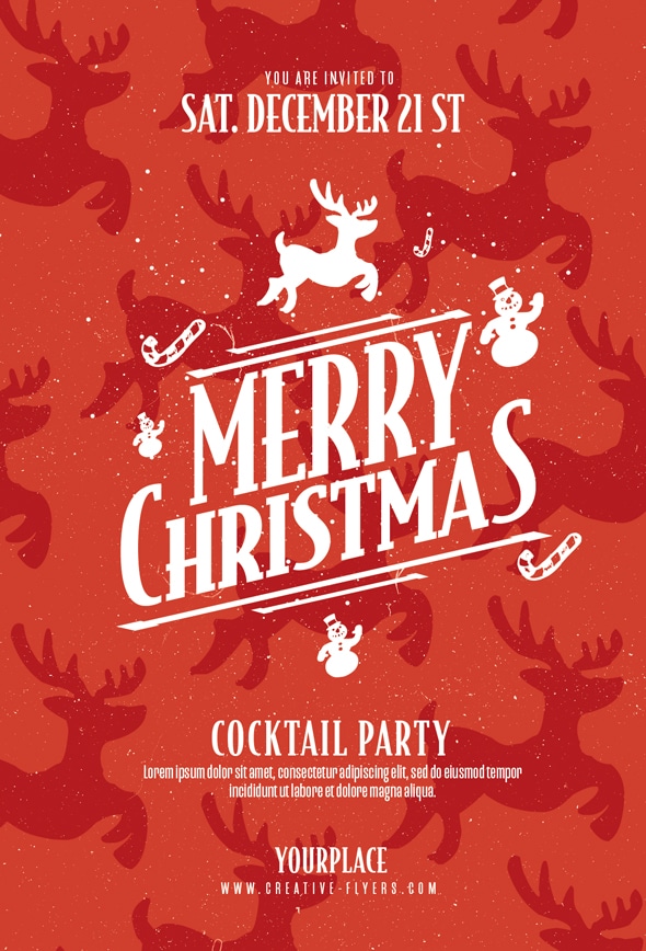 Christmas Card invitation with red font and Christmas decotation, design in PSD format, created to announce your next christmas party, top notch graphic to make a difference with just a few clicks.
