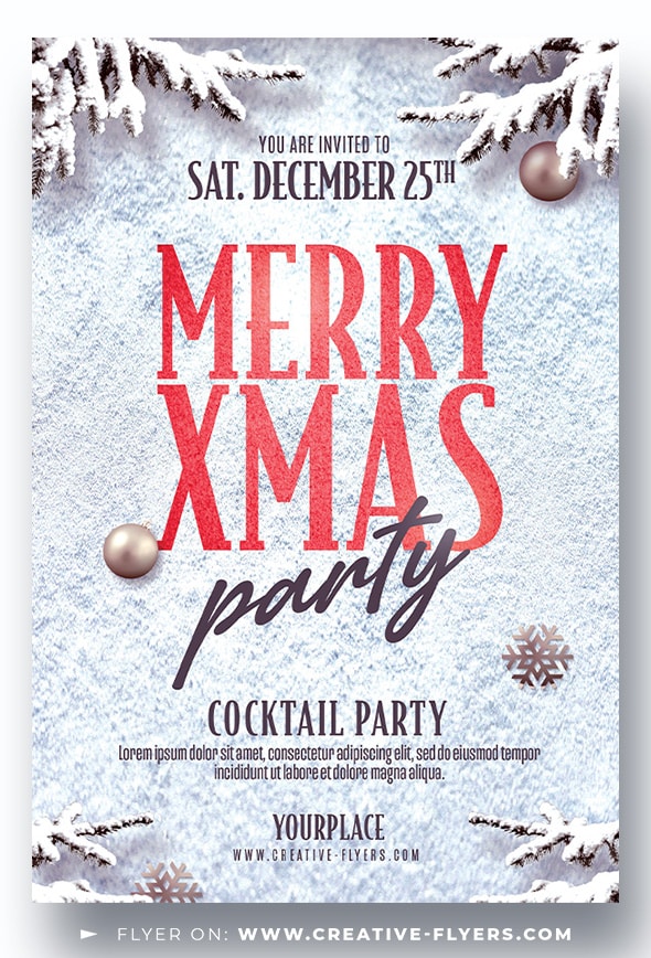 As Christmas approaches, make the difference among all the graphic visuals created for the event. Here is a pack of 3 flyers, with 3 different formats for your different communication medium. This festive leaflet for the evening of December 25 is composed of a white textured background, snow effect, decoration elements for Christmas and in its center the title in red. It can be modified in a few clicks.
