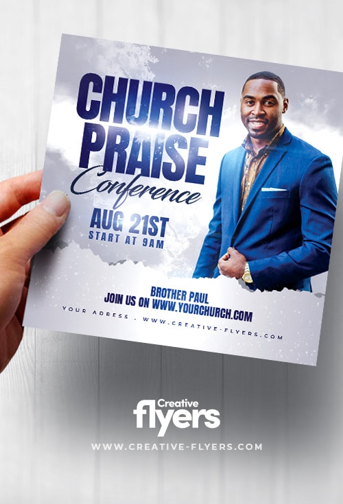 Easily create a church flyer with our photoshop template, you will find a PSD file to create a flyer announcing a worship praise, church sunday service, or your church birthday, modify it as needed , be it colors, policies, and more.