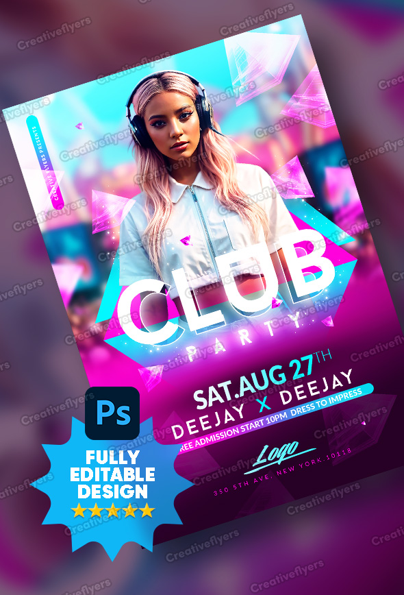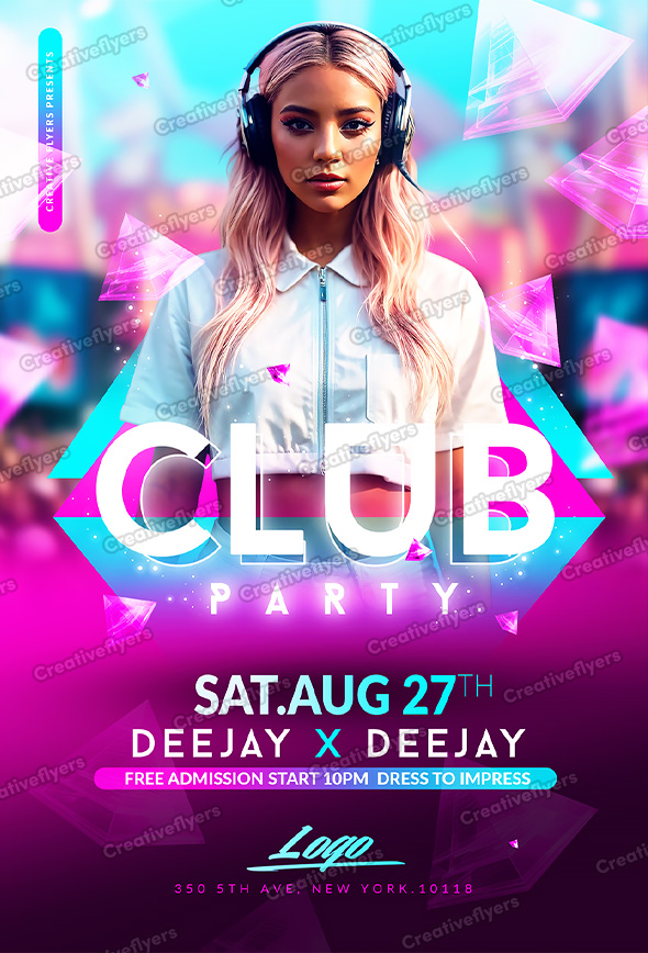This flyer was created to capture the vibrant energy of a modern club night. The design uses neon gradients, a confident central DJ figure, and 3D geometric elements to give a futuristic, stylish feel. The layout is bold and engaging, ideal for attracting a young and trendy audience.
