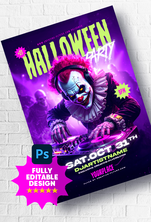 Scary clown DJ flyer crafted for unforgettable Halloween parties