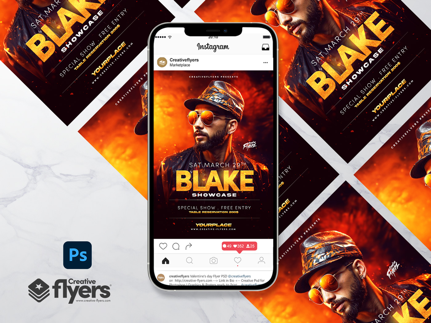 - All texts are editable with the Photoshop text tool.