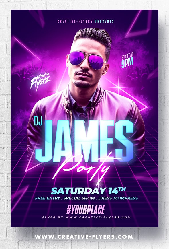 Already create flyers, posters, visuals and graphics for your social networks in just a few minutes. Here is a flyer PSD template to announce the arrival of a DJ in your club, bar, for a private party with a renowned DJ! All graphic elements are included.
