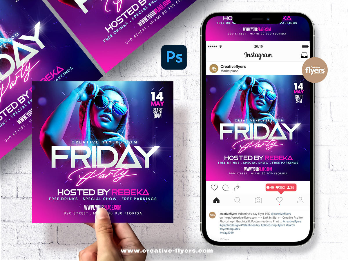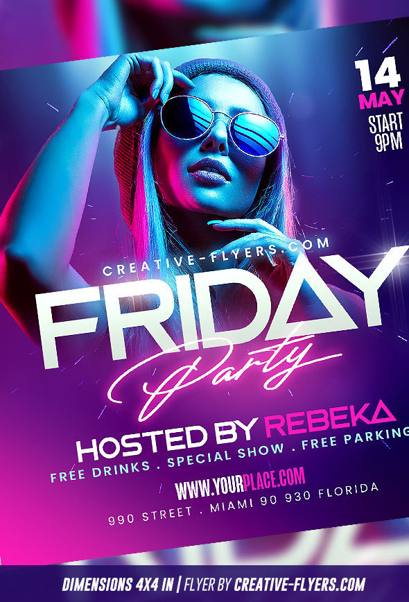 Nightclub flyer template with pink neon effects, you will find in the download 2 PSD files for photoshop, fully editable PSD file.