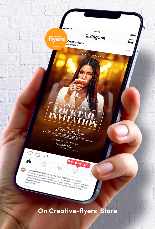 This flyer captures the elegance and exclusivity of a private cocktail evening. Featuring a sophisticated woman winking while holding her drink, warm golden tones create an inviting yet luxurious atmosphere. Bold typography reinforces the exclusivity, making it the perfect visual for upscale gatherings.