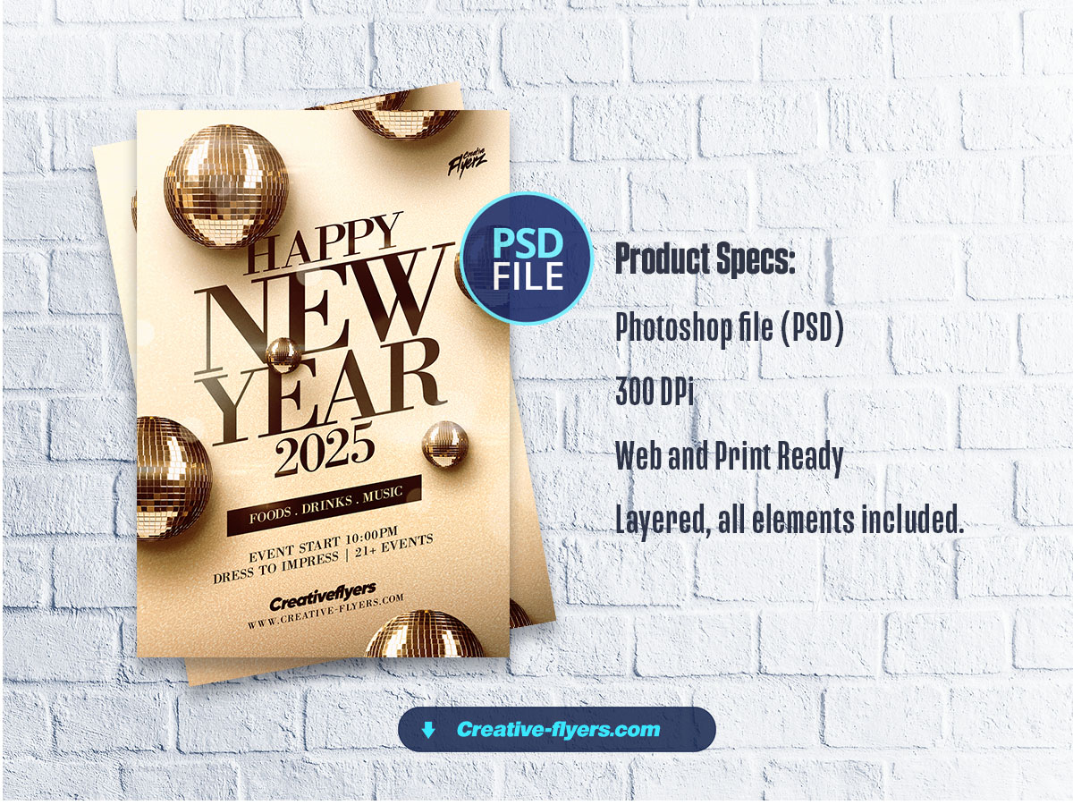 Here is our model with golden background in gold and glitter, preconceived with Photoshop, easy to edit with the text tool. publicize your end-of-year event with this New Year’s flyer.
