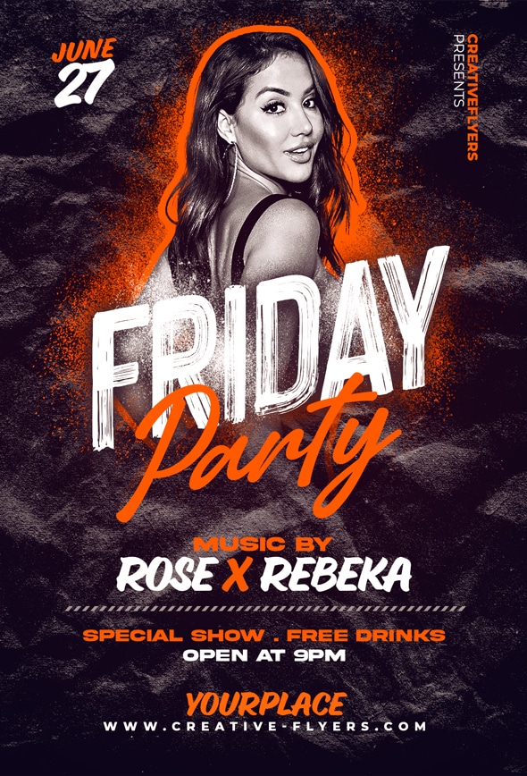 Check out this beautiful flyer for photoshop, with textured effect, brush style typography. Promote your event for your club, bar, or private party in just a few clicks. Your visual communication will be decisive, This product is a fully editable event flyer template in order to achieve the desired result as quickly as possible.