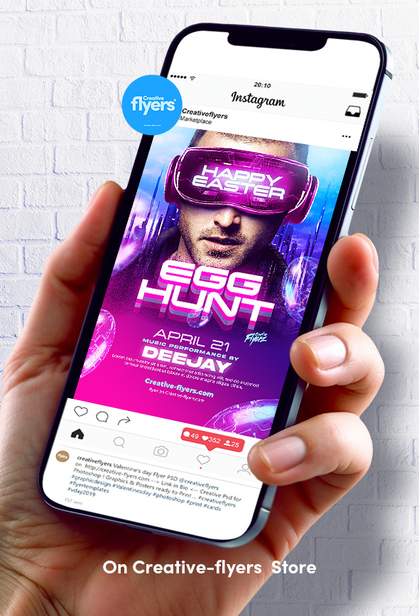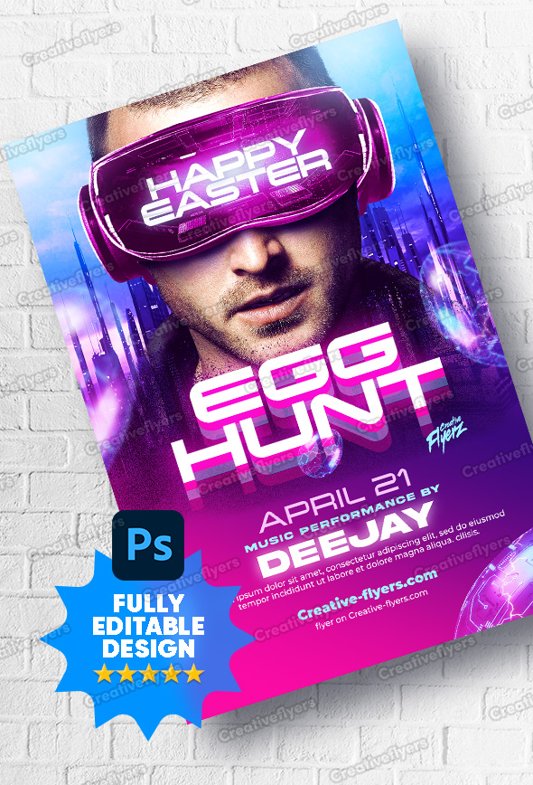 Here is an original design to announce your next Easter party, you need a flyer that stands out thanks to its futuristic, luminous and high quality effects. All elements of this flyer are included and editable.