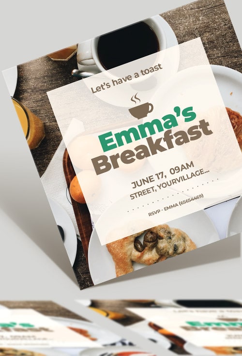 Green and Brown Breakfast Invitation ready to print, customizable design with photoshop, All written text can be changed, In the Help file you will get the download font links ! You can also use it as an E-flyer on your social networks, instagram, facebook…