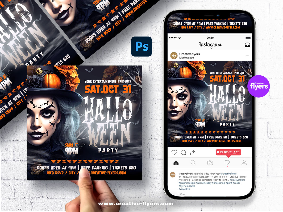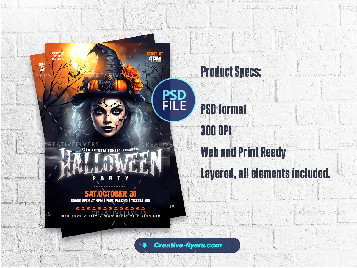 Looking for a flyer for your Halloween party? Here is a creative flyer to download and edit in a few clicks, you can personalize your Halloween poster as you wish, all elements are included and editable. There are many different styles for Halloween in our store, with varied themes like modern, vintage, cute, grunge or horror.