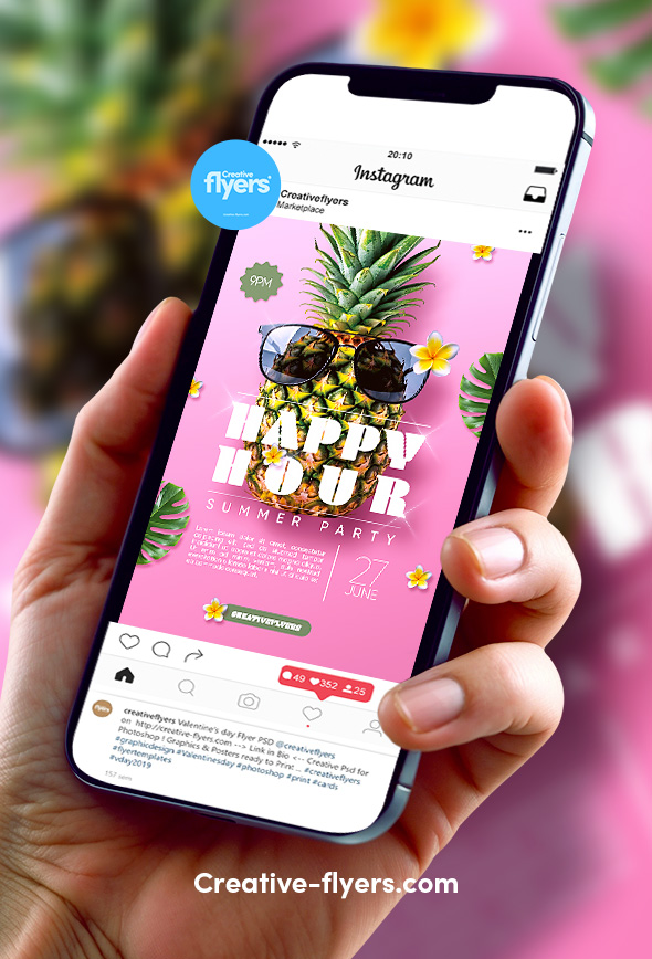 The flyer creation blends bold summer colors with playful tropical elements like pineapples, sunglasses, and flowers. High-contrast visuals and creative typography highlight the event details while setting an upbeat summer party mood. The design balances fun and clarity to attract any viewer, making it ideal for digital invitations or party promotions.