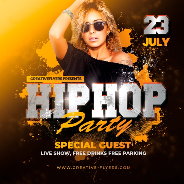 Enjoy downloading this flyer in Photoshop forrmat, a hip hop and urban design, on a black background, light effects, and yellow brush effects, for a grunge effect.