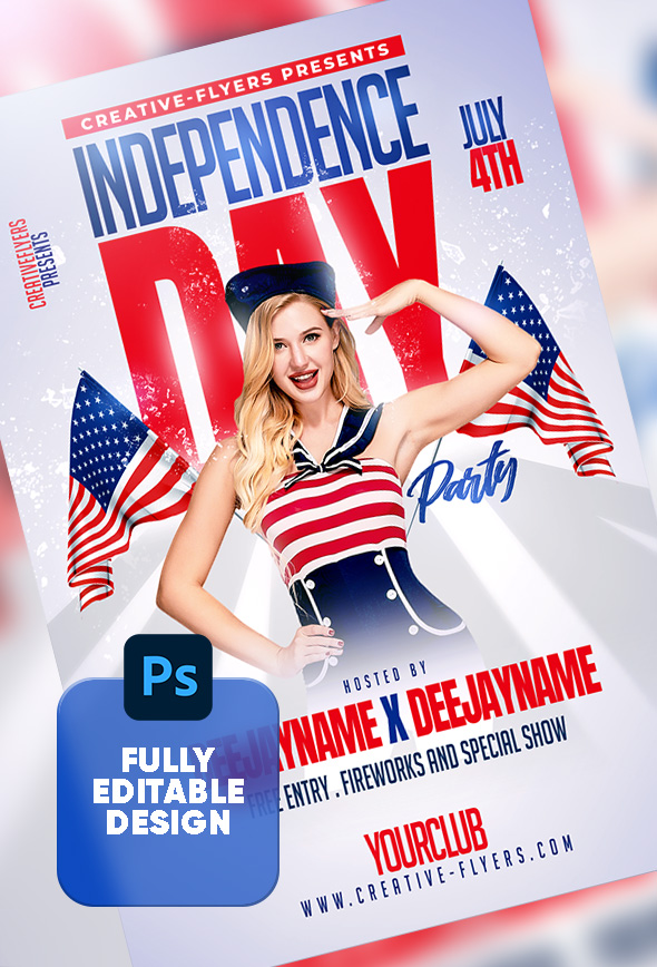 Organize the best events for the American National Day of July 4th, Use this flyer template to announce it and attract more people. This leaflet is fully editable, change the color, text, all graphic elements are included. If you need new seasonal party flyers? have a look in the seasonal flyers category to find what you are looking for.