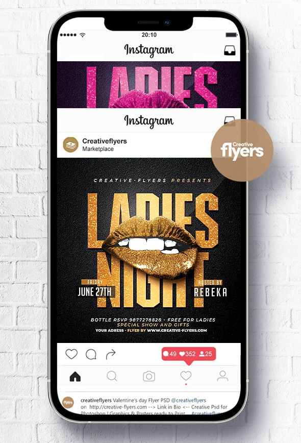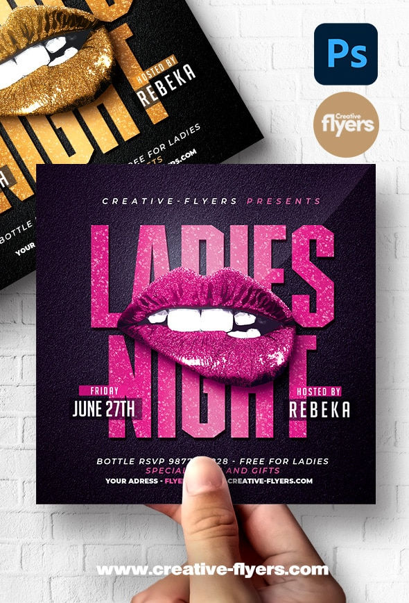 You need to promote an event, a special girls night out, here is our elegant and minimalist black and gold, and black and pink graphic resource with a mouth with gold glitter in the center. An elegant graphic theme, change your text and colors with a few clicks.