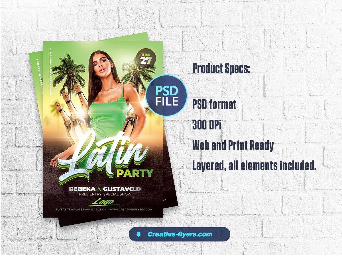 How to create a quality design for your party and Plan your party in advance in a few Clicks? Here is our flyer for Latin evenings, summer parties in a club, in a bar or in a restaurant… A creative and quality design that you will certainly like, design created especially by our graphic designers for our online store creative-flyers .com