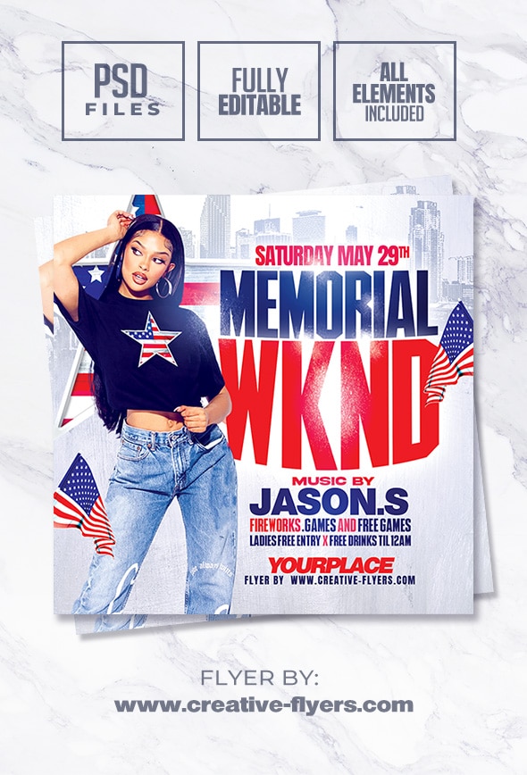 Announce your event in a few clicks, designed with Adobe Photoshop, island is fully editable, a quality creation to announce memorial day, for a festival, a musical event, a pool party, a party in a club. All items are included.