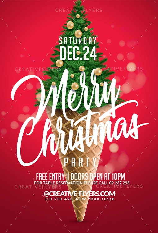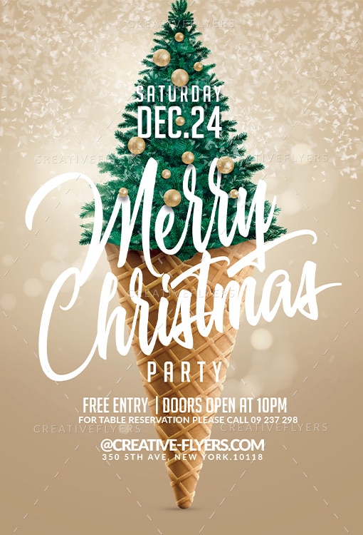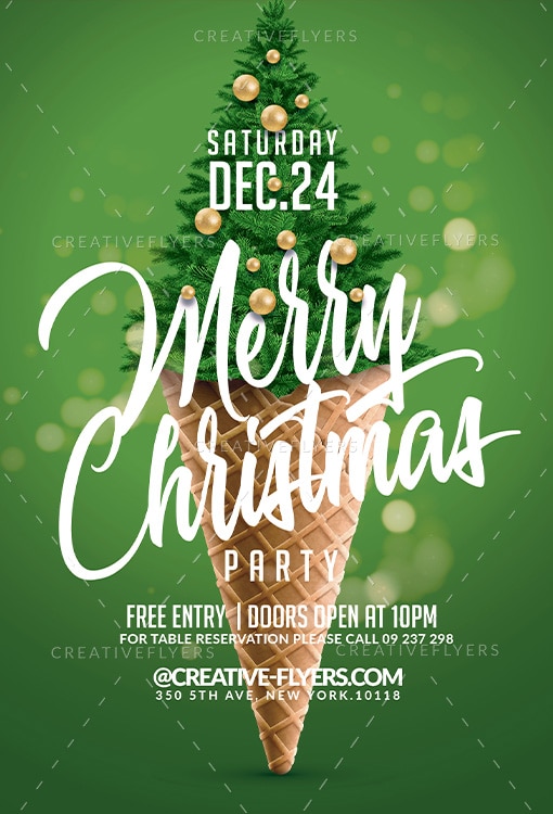 Unique PSD Christmas Tree Ice Cream Cone Party Flyer