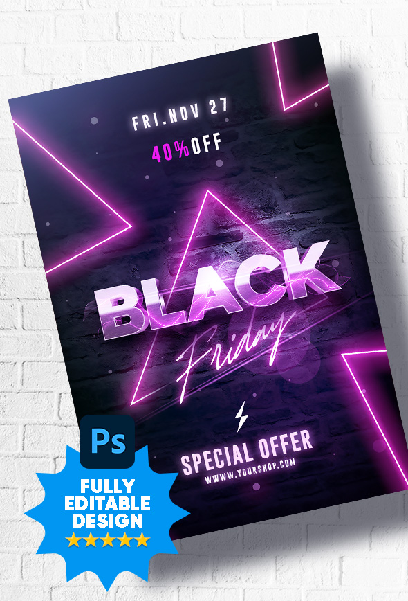 Black Friday flyer combines the elegance of modern design with the energy of neon lights