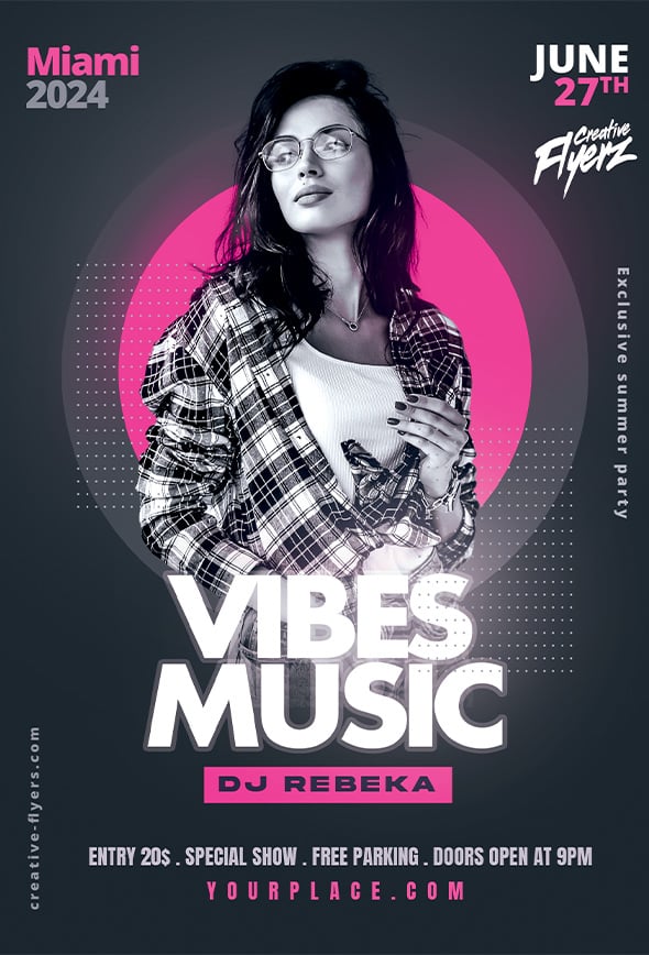 Save time and announce your evening and musical event in a few clicks, black and pink graphic flyer to easily edit with photoshop. club party flyer template, modern and minimalist graphic. A perfect flyer to announce your next event, easily adapt it for an Girls night, but also for an RNB party or others… Take a look at our site every day, even more creativity to achieve the best results.