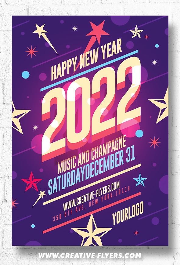 Editable New Year card template, flyers to print for your end of year party! Enjoy downloading a high quality creative invitation designed by Creative Flyers.This beautiful customizable invitation with photoshop is perfect, replace with your own text, print your card and announce your event!