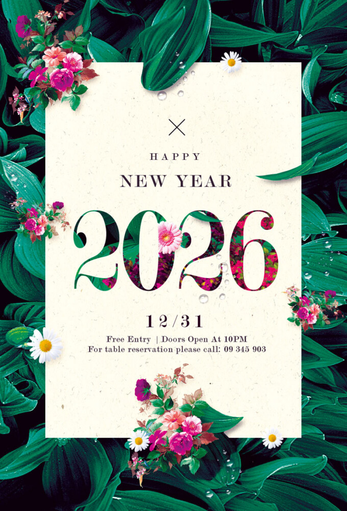 A very eye-catching flyer Template ! If you liked this style, enjoy downloading this Photoshop flyer Psd Template โFloral New Yearโ, a first-rate design by Creative Flyersย perfect to promote your New year Party !