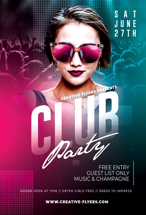 Edit a customizable design template with Photoshop software, specially designed for club evenings, or for a DJ or guest party. Everything can be changed and the included help file contains the fonts!