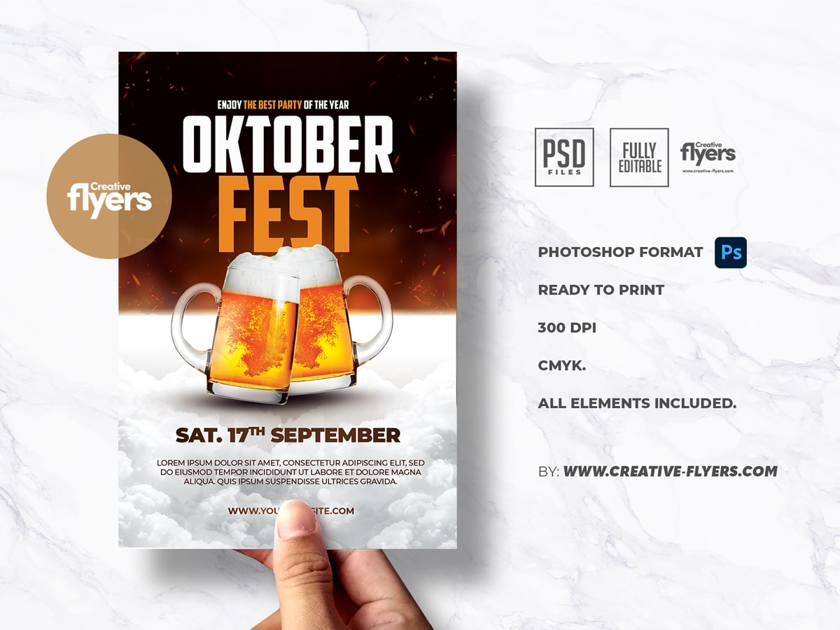 Oktoberfest is coming, that’s why we’re highlighting this graphic design! This Oktoberfest flyer comes in 2 sizes, advertise your event professionally with our pre-designed photoshop flyers.