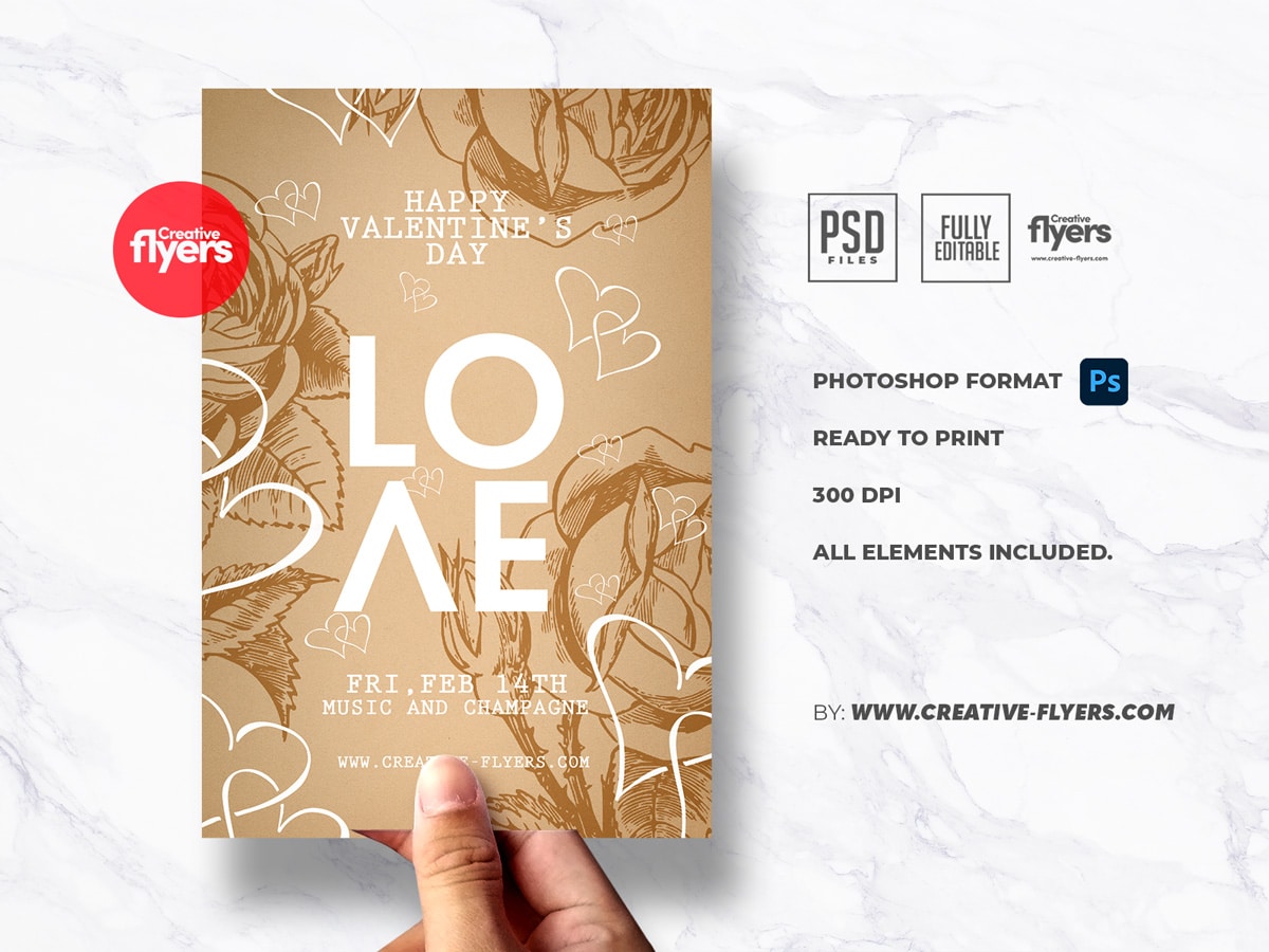 If you need a minimal and elegant invitation for Valentine’s Day, this template might be for you. An elegant graphic design with elements and texts all editable and customizable with photoshop.