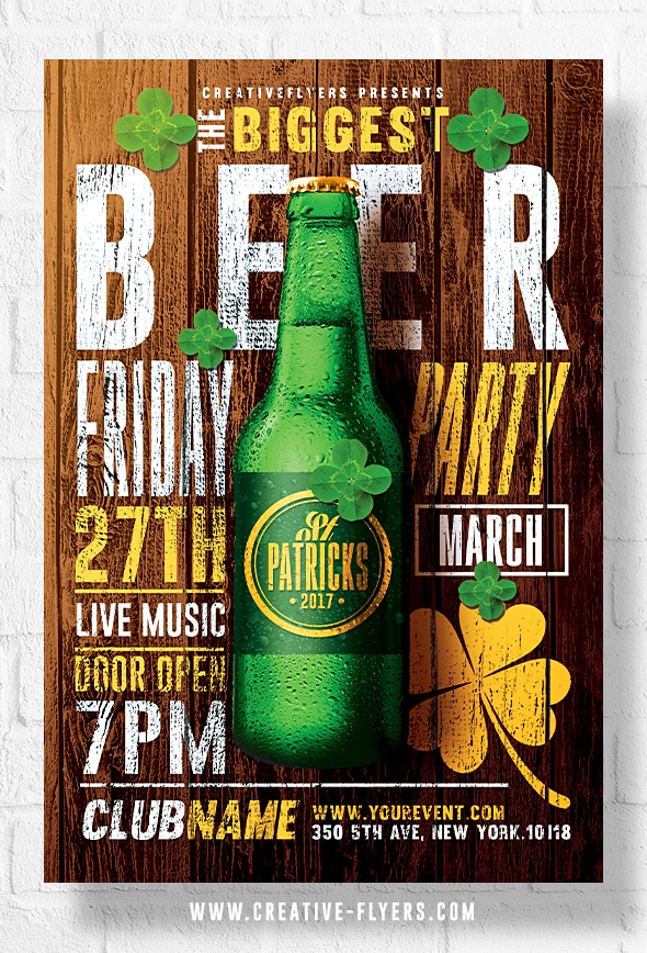 A very eye-catching flyer Template ! If you liked this style, enjoy downloading this Photoshop PSD Template โSt Patricks Day Flyerโ, a first-rate design by Creative Flyers perfect to promote your St Patrickโs Day Party !