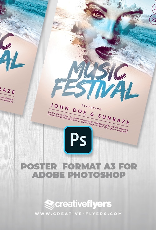 A graphic poster for a summer Evening / Party or a beach music festival! a unique style only on Creative-Flyers.com, enjoy downloading this A3 poster in Photoshop PSD format, a first-rate design perfect for promoting your event in a few minutes.!