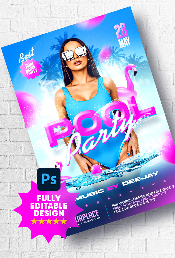 This vibrant digital flyer was meticulously crafted to capture the essence of an exciting pool party. We focused on bold typography, dynamic water effects, and eye-catching imagery, including the central figure and playful flamingo inflatables, to ensure maximum visual impact. The design aims to convey a lively and inviting atmosphere, perfect for promoting a memorable summer event and attracting a large audience.
