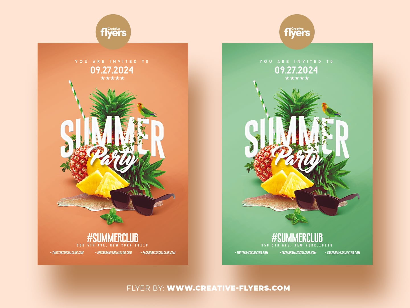 A very eye-catching Graphic Template for your next summer party, if you liked this style, enjoy downloading this Photoshop file in PSD format, a first-rate design by Creative Flyers.