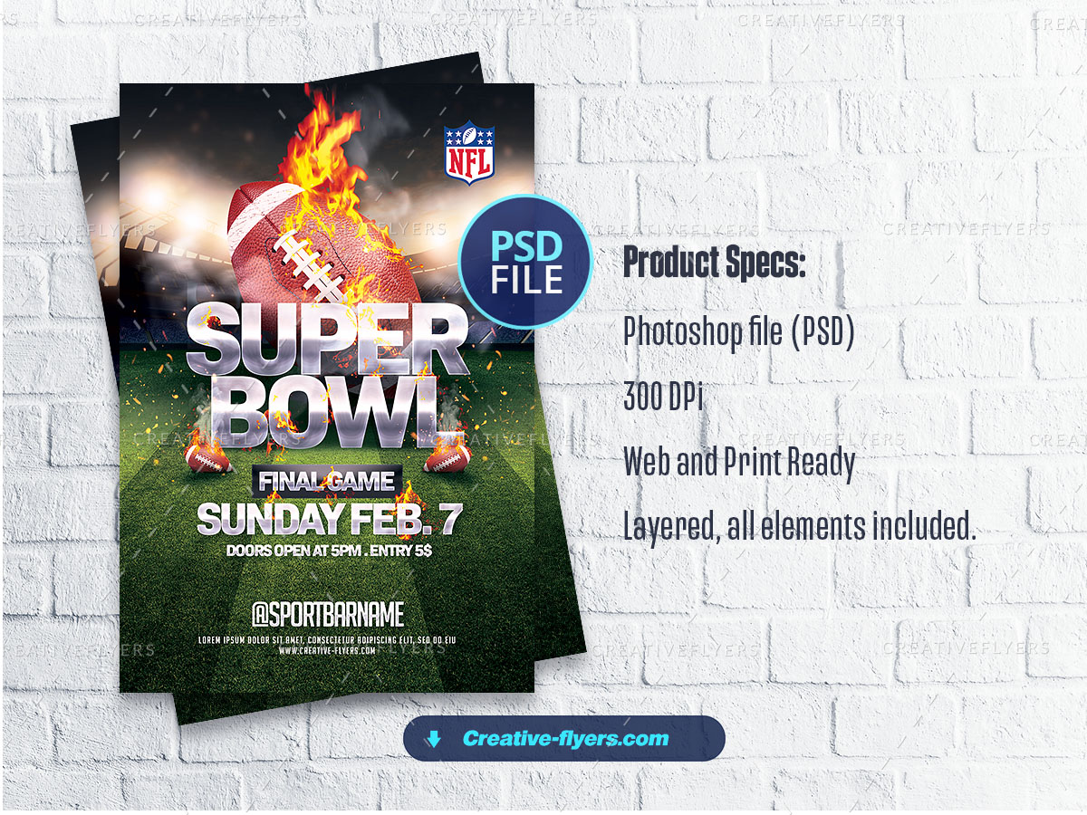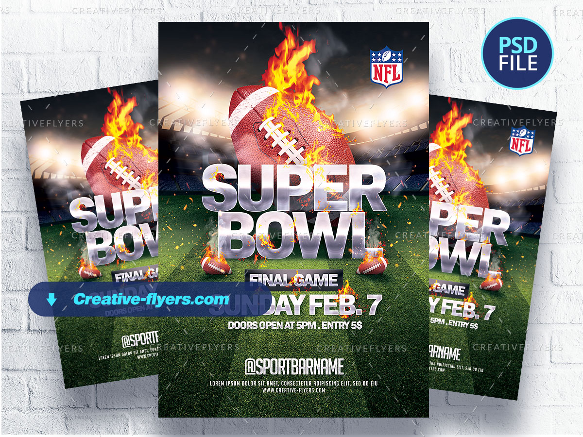 Create a very eye-catching sports flyer template, If you liked this style, download from this PSD template, and announce the next superbowl game.