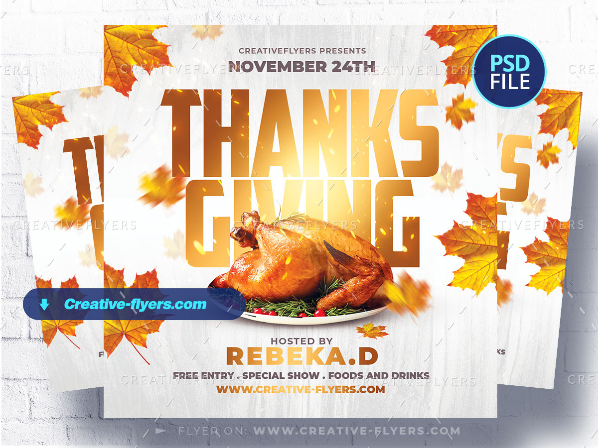 Promote your Thanksgiving night in just a few clicks? An excellent quality advertisements enierly modifiable, this graphic template to invite your guests to a dinner for thanksgiving is downloaded, simply modified the flyer with own texts. (all items are included)