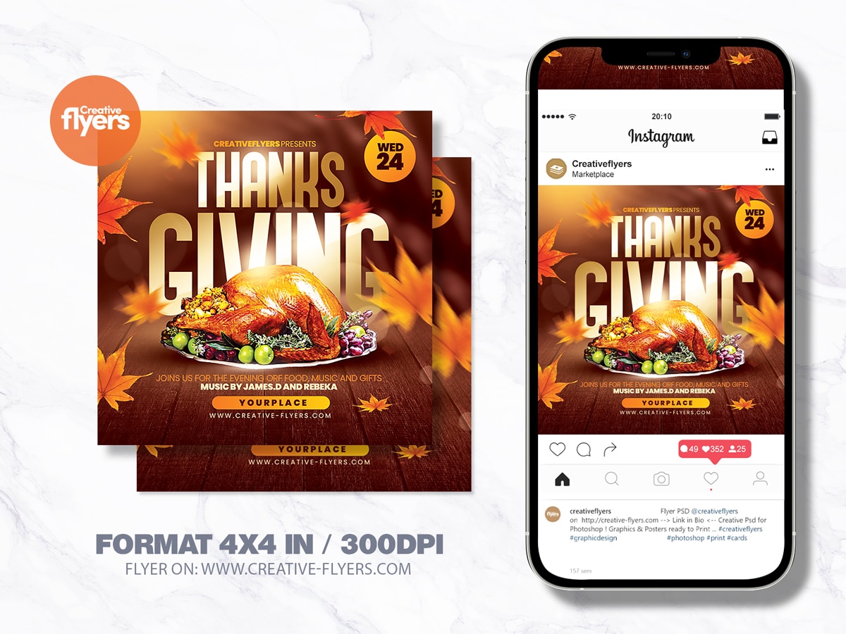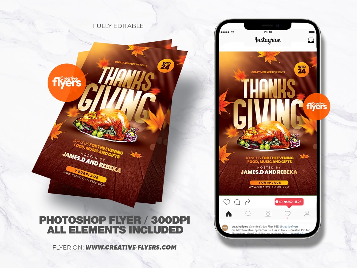 You want to announce your evening for thanksgiving and you do not have enough time to create a quality flyer, here is our flyer template for your thanksgiving day with beautiful fall colors, all elements are included and editable, with 2 formats included.