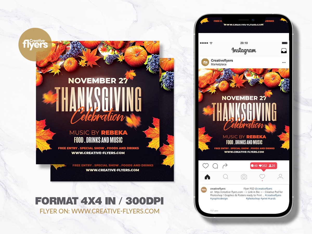 We present to you a fashionable and quality flyer template for Thanksgiving, to help you announce your event in just a few clicks. This top view flyer is beautifully decorated with fall color and beautiful lighting effects. All elements are editable and included in the download.
