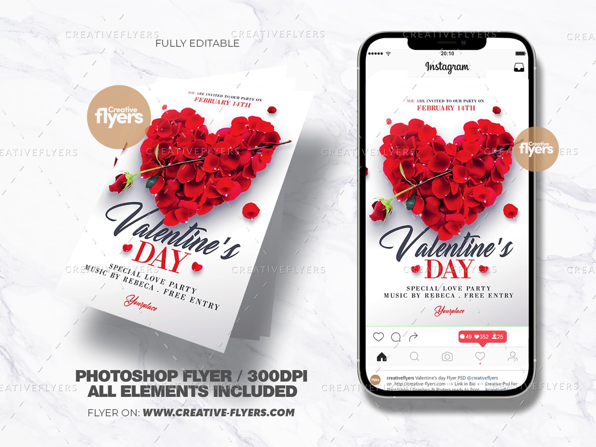 Looking for a template to promote Valentine’s Day? This very elegant model, white and red with many heart-shaped rose petals. The design is fully and easily editable in photoshop.