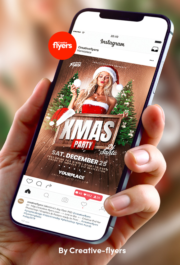 Created to embody Christmas cheer, this flyer combines bright lights, Christmas trees, and seasonal textures. The playful pose of the central figure enhances the festive vibe, while snow particles and warm tones enrich the visual atmosphere. Designed for party organizers and venues wanting a modern and eye-catching holiday promotion.